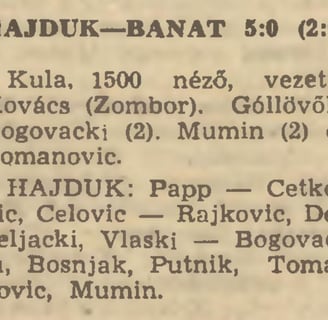 Пре тачно 61 годину Хајдук је био јесењи шампион Треће лиге. Испред клубова као што су: Вождовац, Железник, Жарково, Текстилац, Динамо (П), Бечеј, Црвенка... У последњем колу јесени, побеђена је екипа Баната 5-0, головима Боговачког (2), Мумина (2) и Томановића. Исечци су из новина Магyар Сзо (02.12.1963.)